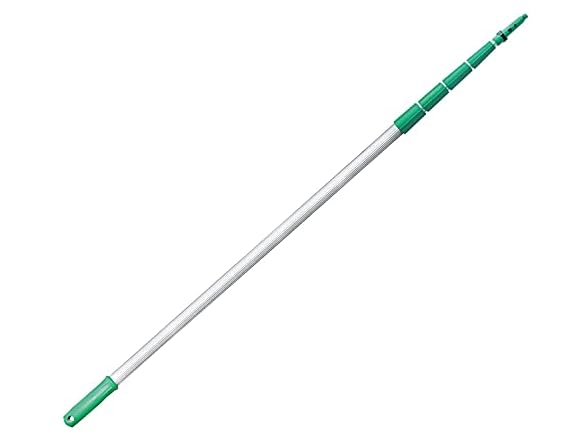- Modular telescopic extension pole system keeps you safe on the ground with ladders