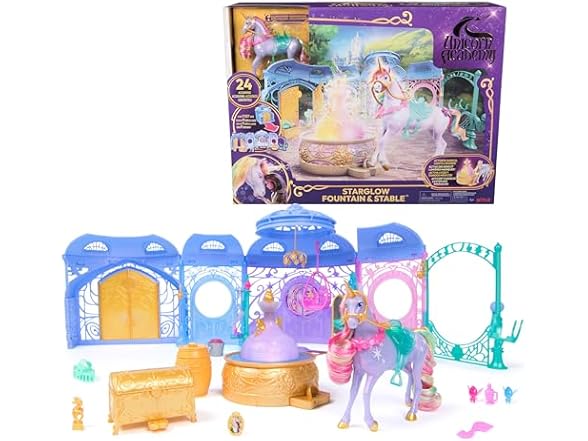 - Unicorn Academy, Starglow Light-up Fountain & Stable Playset, Easter Gifts Idea, Dolls & Unicorn Toys, Includes Wildstar, 24 Accessories, Sound Effects
