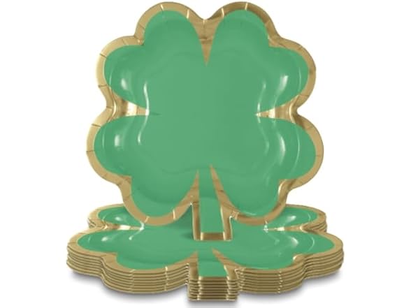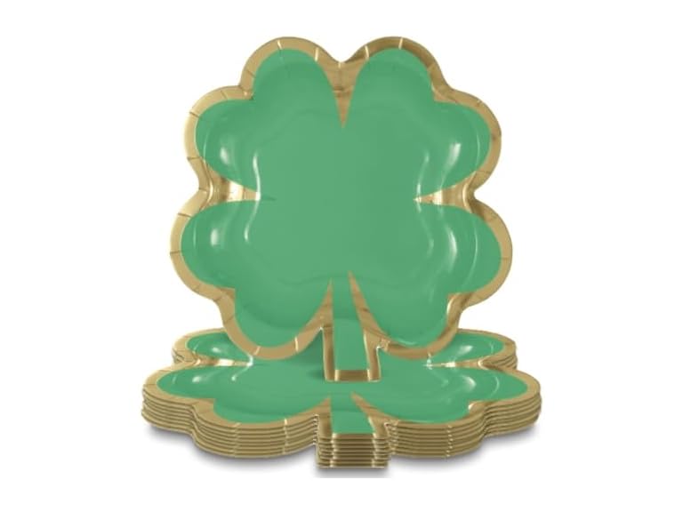 - FESTIVE SHAMROCK DESIGN: Adorned with a vibrant green shamrock shape and elegant gold foil stamping, these plates add a touch of charm and luck to your St. Patrick's Day and spring celebrations.
