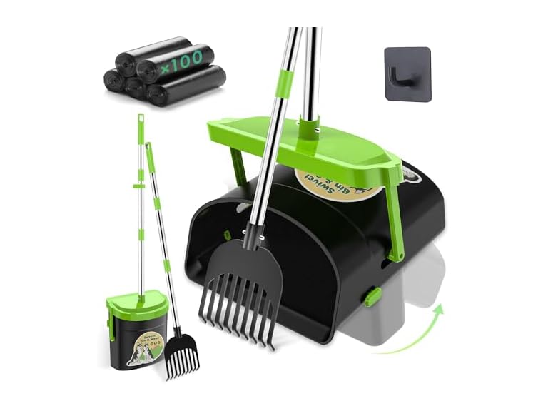 - Outdoor Swivel Bin & Rake Kit: Large capacity bin with metal rake design simplifies pet waste cleanup. Swivel bin with odor-proof lid is easy to use for yards or multi-pet homes. Sturdy rake suitable for all surfaces, including dirt, gravel, and concrete