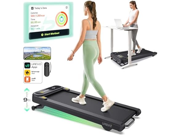 - đąăEfficient Calorie Burningă Spacewalk 3S smart walking pad treadmill is designed with a 9% auto incline, enhancing calorie-burning efficiency. Simply one key to invoke the automatic incline via the remote control or UREVO APP.
