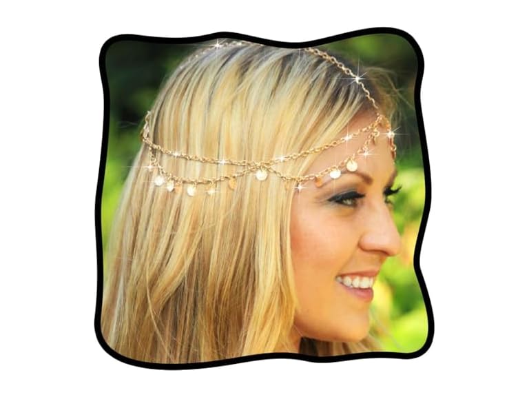 - (1) Urieo Gold Headpiece, Sequin Head Chain, Hair Jewelry Accessory for Women
