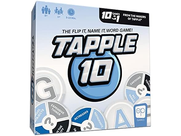 - Get ready for a flip it, name it, fast-paced word game! Tapple 10 features 10 exciting games in 1 box - tap into your quick-thinking skills as you face off against others for endless game night fun.