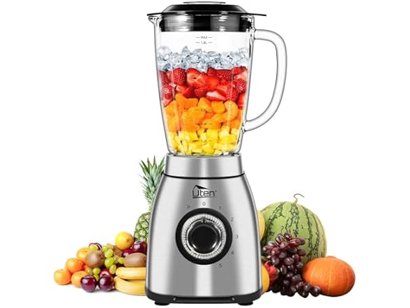 (1) Uten 800 Watt Hight Speed Countertop Blender for Smoothies and Shakes, Ground Coffee Beans, 60 Oz Glass Jar, 5 Speed Settings and Pulse