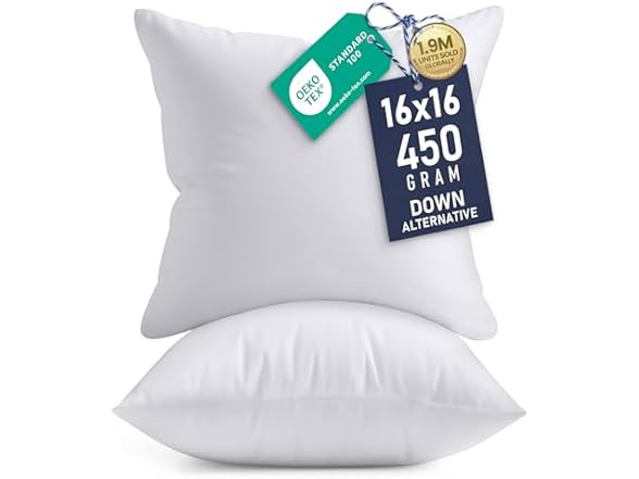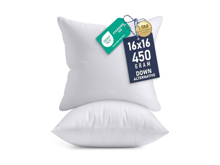 - (1) Utopia Bedding 16x16 Pillow Inserts, Set of 2, White – Indoor Decorative Throw Pillows for Bed, Sofa & Couch – Soft, Supportive & Fluffy Cushion Inserts