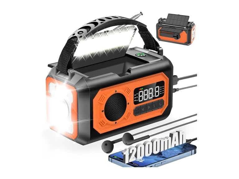 - UYEIKMLOP 12000mAh Emergency Hand Crank Weather Radio