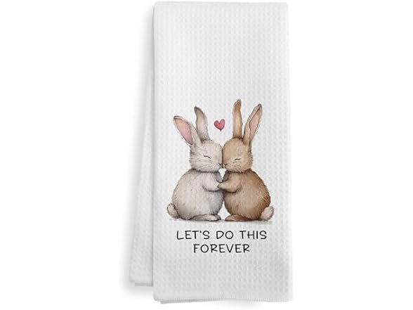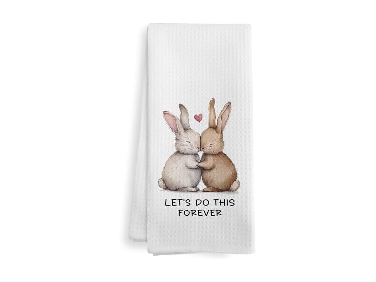 - (1) XNXLDYLH Valentines Day Bunny Kitchen Towels, Bunny Valentines Couple Gifts for Women Her Him Kids, Let's Do This Forever, Bunny Valentines Decor Dish Hand Tea Towels for Bathroom Kitchen, 16x24 Inch