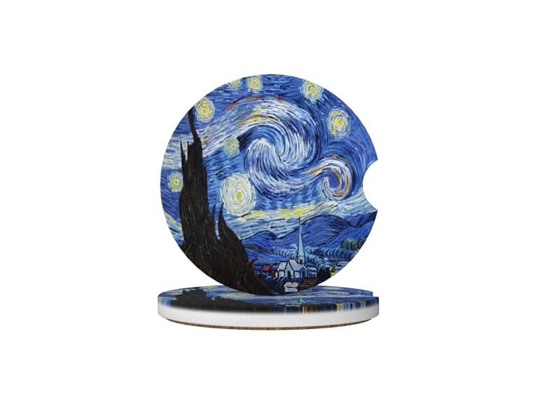- Van Gogh Watercolor Painting Ceramic Car Coasters for Cup Holders,Tubdic Anti Slip Car Cup Holder Coaster,Super Absorbent Car Cup Coasters with Cork Base and Finger Notch,Cute Car Accessory for Women