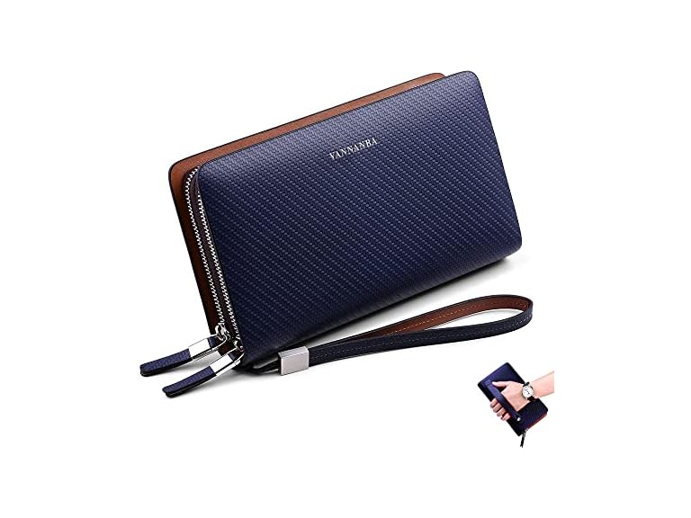 - (1) VANNANBA Clutch Purses Wristlet Wallets Large Leather Designer Double Zipper Long Hangbags Business Travel Clutch Phone Holder,Gift for Mens Father Son Husband Boyfriend(Blue)