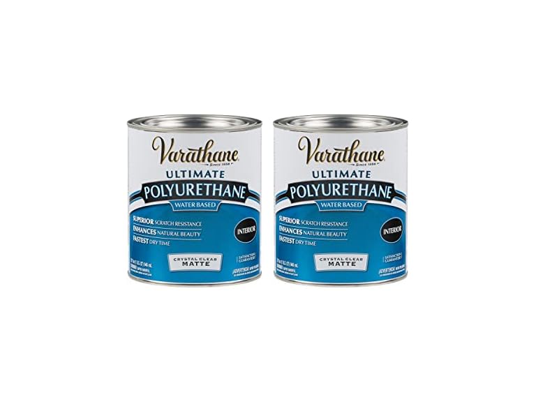 - (1) Varathane 262074-2PK Water-Based Ultimate Polyurethane, Quart, Matte Finish, 2 Pack