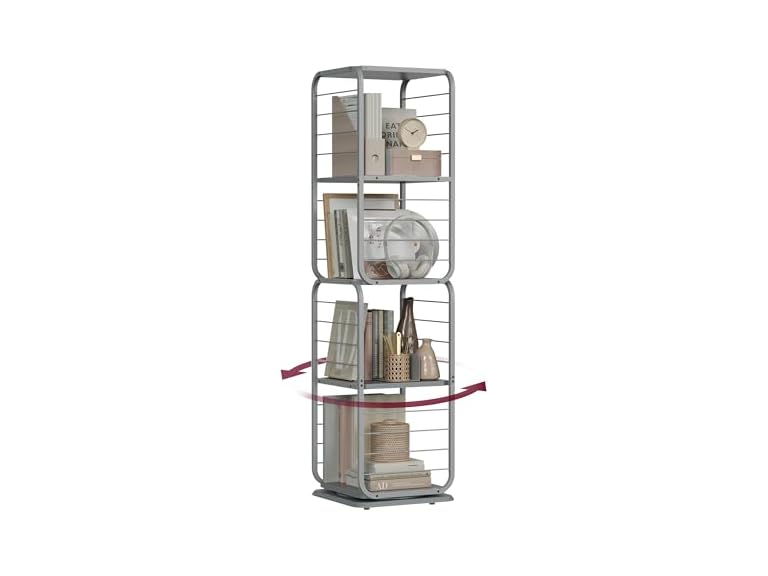 - (1) VASAGLE 4-Tier Rotating Bookshelf, Bookcase with Bookends for Small Spaces, Corner Shelf, Steel Frame, Dove Grey ULLS127G36