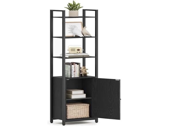 - (1) VASAGLE 6-Tier Bookshelf, Tall Bookcase with Cabinet, Steel Frame, Adjustable Shelves, 9.4 x 15.7 x 62.8 Inches, Living Room Bedroom - your choice of color