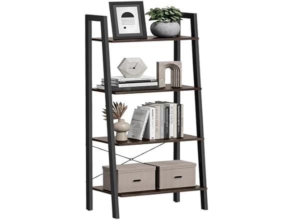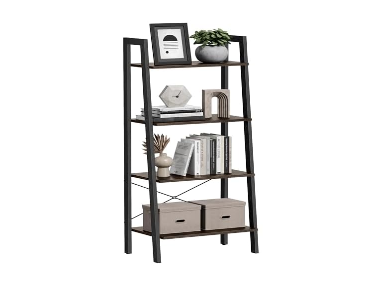- (1) VASAGLE Ladder Shelf, 4-Tier Bookshelf, Storage Rack, Bookcase with Steel Frame, for Living Room, Home Office, Kitchen, Bedroom, Industrial Style - your choice of color