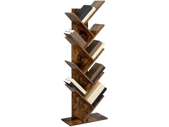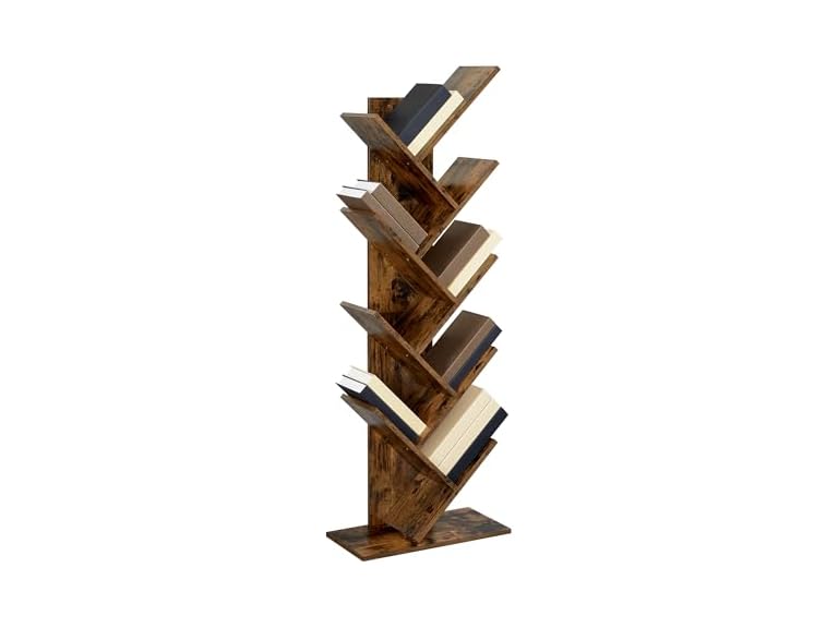 - (1) VASAGLE Tree Bookshelf, 9-Tier Bookcase, Large Bookshelf, Space-Saving Corner Shelf, Book Tree, Holds Books, CDs, Games, for Bedroom, Living Room, Home Office, Rustic Brown ULBC11BX