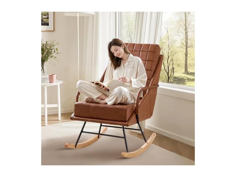 - (1) VECELO Rocking Chair Nursery, Over Size PU Leather Glider Rocker with High Backrest, Upholstered Removable Back - Choose Color