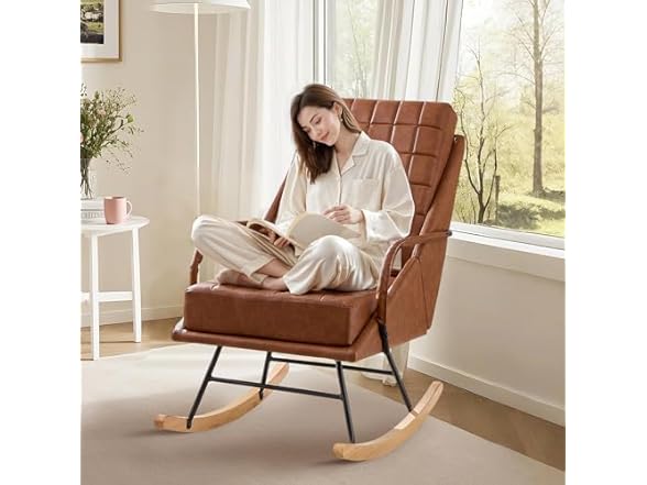 - Ergonomic Design: This rocking chair features a thicker backrest and a longer seat than other chairs, has ample space, the backrest is soft enough but provides exceptional support for your back. Fits people of all heights, tall people can also curl up comfortably in it.