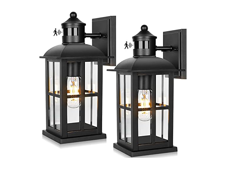 - 100% Aluminum & Anti-Rust, Waterproof: Execllent quality, this motion sensor wall light is made 100% heavy-duty rugged aluminum, can be used for years without fading. Even if it is placed outdoors for a long time, the outdoor motion sensor lantern will always remain bright and new, and it is not easy to be contaminated with dust. After high specification test, the motion sensor porch light can be used in any outdoor environment and extreme weather, rain and snow, ultra-high or low temperature