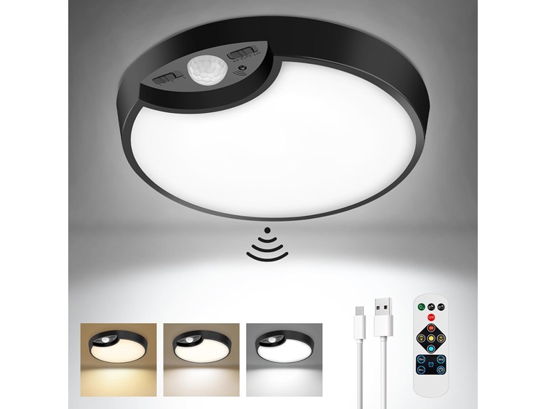 In the Box: (1) VerRon 7.5" Motion Sensor Ceiling Light with Remote, Black
