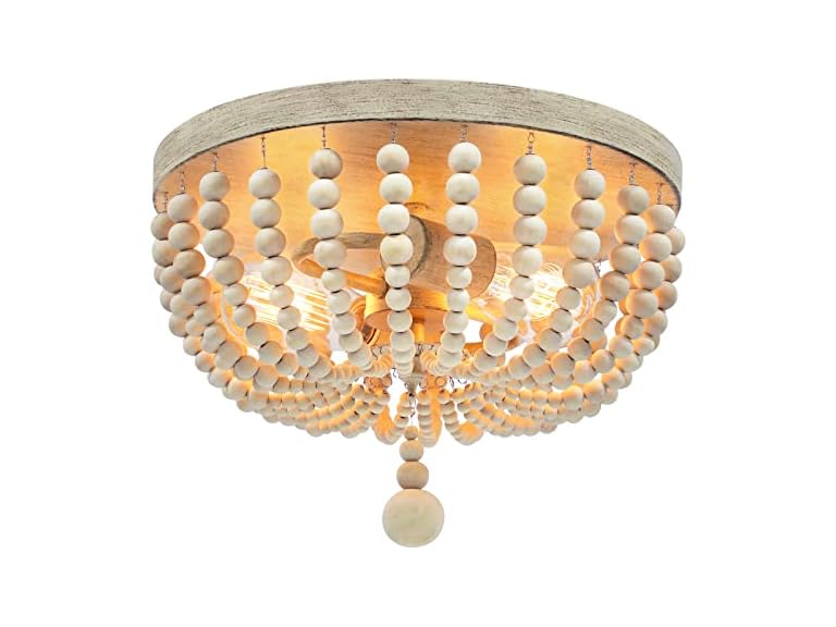 - Wood Beaded Shade & Graceful 2-Light ‘S’ Shape Socket: The elegant ‘S’ shape socket formed by 2 lights echoes to the gorgeous wood beads, which soften the glare bright and your eyes won’t feel hurt when lying down. Instead, you may enjoy the beautiful light ray flower pattern on the ceiling. The bedroom ceiling lights suits for E26 based bulbs Max 60W, including LED and incandescent. It is dimmable if a dimmer switch and dimmable bulbs are provided. (bulbs NOT included)