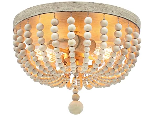 - Premium Materials& Durable: The back plate is made of top rank metal, painted carefully, won’t get rusty or flaking paint. While the solid wood beads, polished by exquisite craftsmanship, are easy to clean and won’t got mildew, making our beaded light fixture stand to the test of time, greatly save your time and energy from painting and cleaning the wood bead chandelier with much effort frequently. This wood beaded ceiling light fixtures will be the one to match with your warm house