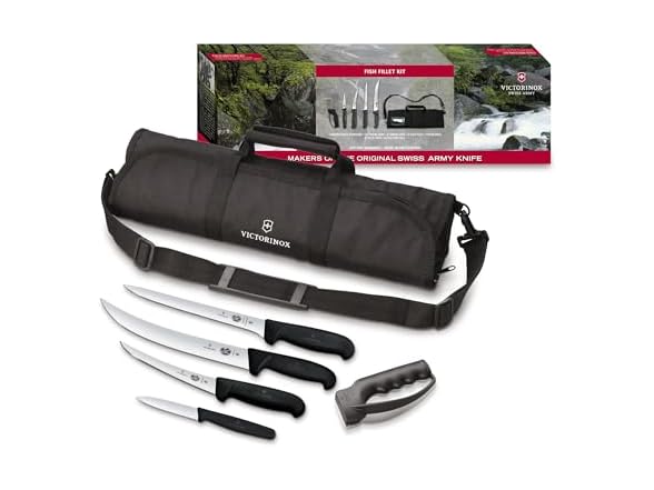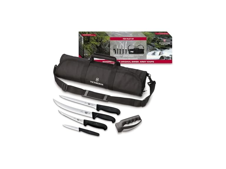 - Victorinox Fibrox Fish Fillet 6 Piece Kit Includes Sharpener and Cutlery Roll, Black