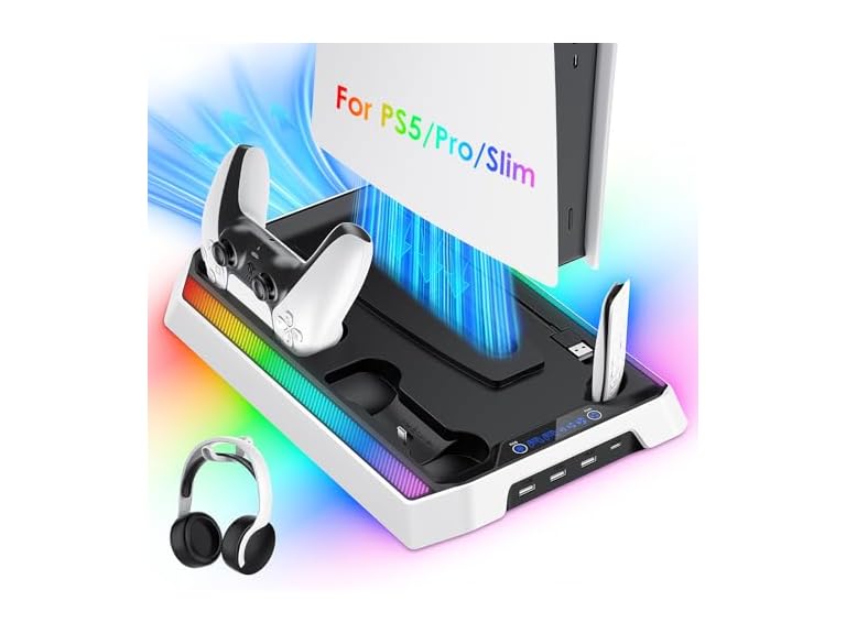 - Cooling Station for PS5: This cooling stand is custom-built for both Disc and Digital editions of the PS5/Pro/Slim, providing a secure and balanced fit without blocking any ventilation or ports.