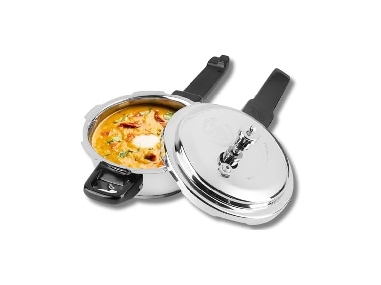 - (1) Vinod Cookware Induction Friendly Stainless Steel Sandwich Bottom Pressure Pan With Lid Mirror Finish 3 Litres