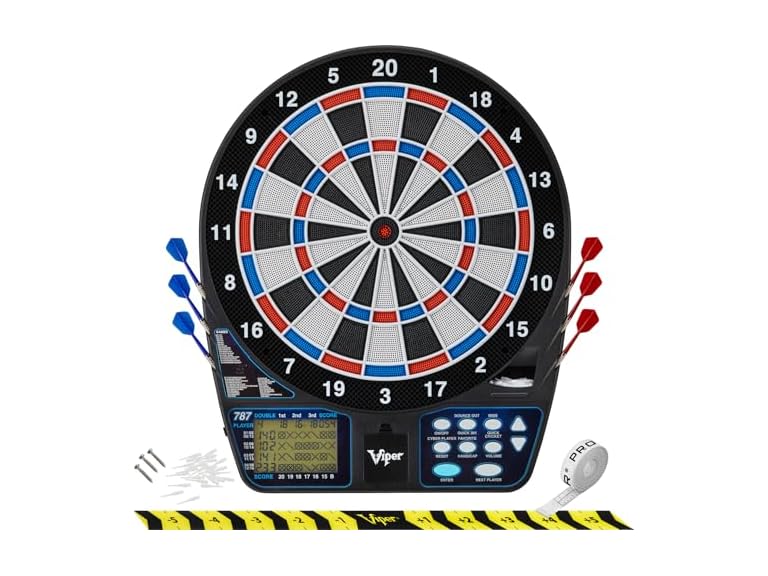 - Viper 787 Electronic Dartboard Ultra Thin Spider for Increased Scoring Area Free Floating Segments Locking Segment Holes for Fewer Bounceouts Automatic Scoring