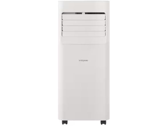 Stay cool all summer with the Vissani 5,000 BTU Portable Air Conditioner, ideal for bedrooms, offices, and small living areas up to 150 sq. ft. Its 3-in-1 design delivers cooling, air circulation, and dehumidification in one compact, mobile unit. Installation is quick with the included kit, and four wheels make it easy to move wherever you need it. Enjoy quiet operation, a 24-hour programmable timer, two fan speeds, and a washable air filter. A convenient remote control and auto-restart feature add ease of use.