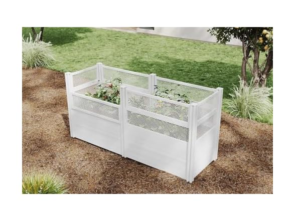 Inspired by the African keyhole gardening technique, the Classic Keyhole Composting Garden lets you compost household waste and grow vegetables in the same garden. Featuring two central baskets to conveniently dispose of your daily compostable scraps, your household waste is then organically transformed into nutrient rich soil that nourishes your garden. Compost fed soil better holds moisture and nutrients, uses up to 70% less water, and increases yield by up to 30% allowing you to grow more by doing less. Bordered by foldable fence panels so you can still get in while keeping unwanted animals out. With 22 square feet of planting space and easy, no maintenance composting, the Keyhole Composting Garden is perfect for growing food for the whole family. It's crafted from durable food-grade BPA/phthalate-free vinyl that ensures healthy, safe food production and a long product lifespan. Boards slide into posts easily and conveniently, with no need for screws. It’s smart, sustainable and beautifully designed.