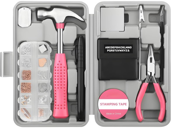 Vital Ease 17-Piece Jewelry DIY Tool Set This all-in-one jewelry making kit includes essential tools and materials for creating earrings, necklaces, bracelets, and more. Designed for precision and convenience, it is suitable for a variety of crafting projects. What’s Included: 3 Mini Pliers (4.5-inch): Pointed-nose, angled-nose, and round-nose pliers for detailed work, bending, and shaping. 15 Needles (with Storage Tube): A complete set of needles for beading and threading, stored in a convenient tube. 2 Tweezers (Pointed & Bent): Ideal for picking up tiny beads and handling delicate components. 1 Pair of Precision Scissors: Designed for cutting threads and wires with ease. 1 Wooden-Handled Awl: Suitable for piercing and adding fine details to jewelry. 3 Gourd-Shaped Needle Threaders: Designed to make threading quick and efficient. Materials Included: 6-Meter Metal Wire Roll: Durable and flexible, suitable for creating rings, chains, and other circular jewelry pieces. 20m White Nylon Thread Spool (0.4mm): Strong and smooth, ideal for stringing beads and securing clasps. 150cm Plastic Tape Measure: Lightweight and easy-to-read for precise measurements. Organization Features: 12-Grid Accessory Box: Keeps small components (beads, pins, rings, and more) neatly organized and accessible. Compact Case (200x125x45mm, 530g): Portable and lightweight, designed for easy storage and transport. Additional Components: Clasps, Hooks, and Pins: 20 clasps, 10 earring hooks, 50 eye pins, and 40 bead pins. Rings and Beads: 100 positioning beads, 100 4mm rings, 100 5mm rings, 100 6mm rings, and 50 8mm rings. Cable Clips and Hanging Clasps: 20 cable clips and 20 hanging clasps for secure and stylish finishes. Product Features: Comprehensive Kit: Includes 17 tools and over 200 accessories for various jewelry-making projects. Durable Materials: Zinc alloy components with anti-rust coating (tested for 72 hours in salt spray environment). Ergonomic Design: Non-slip handles and lightweight tools for comfortable use. Usage Instructions: Use the pliers to shape metal wire into desired designs. Thread beads onto the nylon thread or metal wire using the included needles. Secure clasps and hooks using the provided tools and accessories. Note: This product is intended for jewelry-making purposes. For best results, store in a dry place after use.