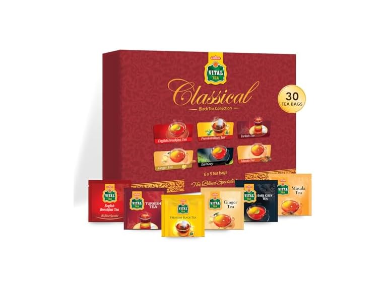 - ✔ Premium Black Tea Sampler – Enjoy a variety pack featuring Turkish Tea, English Breakfast, Earl Grey, Masala Chai, Ginger Tea, and Premium Black Tea; a perfect selection for black tea lovers.