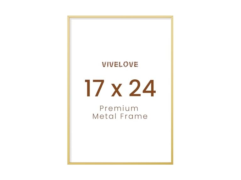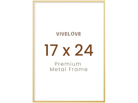 - (1) Vivelove 17x24 Picture Frame Gold Set of 1- Photo Frame for Wall Tabletop & Wall Decoration - Wall Mounting Horizontally or Vertically - Tempered Glass