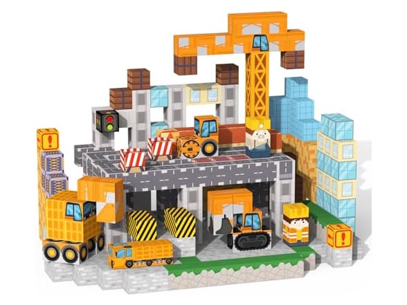 - 154PCS Magnetic Construction Building Set: Includes 154 magnetic building blocks to create a complete construction site with roads, structures, and creative layouts