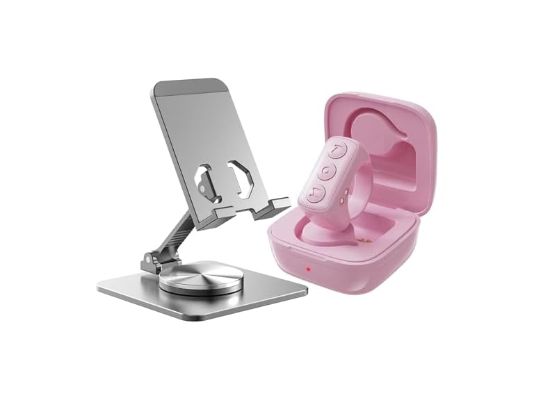 - (1) VONOV TikTok Remote Control Kindle App Page Turner Phone Holder Kit Revolve Adjustable Cell Phone Desk Holder Stand Bluetooth Camera Video Recording Remote, TIK Tok Scrolling Ring