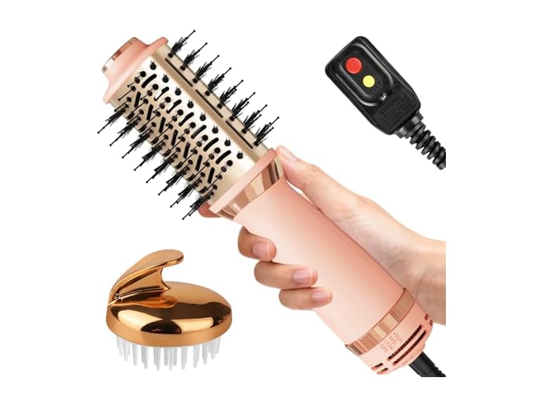 - 4-in-1 Hair Dryer Brush: The Voseki 4-in-1 hot air brush is a compact, 10-inch styling tool that combines a comb, blow dryer, straightener, and curling iron. Ideal for home or travel, it also features a scalp massager to help you relax while bathing.