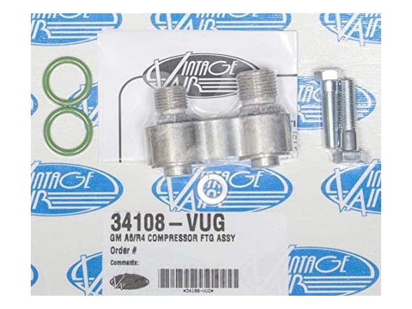 - (1) Vintage Air VPA 34108-VUG OEM Compressor Adapter Block Kit GM A6/R4 Early-Style Compressor A