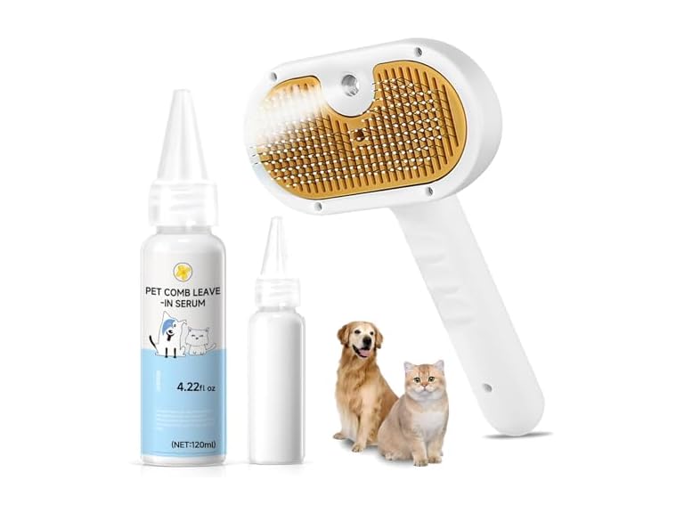 - 【Sturdy, Safe and Skin-Friendly Cat Brush】: This cat steam brush are made of high-quality ABS plastic for the casing and stainless steel for the bristles. And, we've wrapped the bristles in a protective gel to ensure effective removal of dead skin and loose hair while protecting your pet's skin from damage. You can add conditioner or softener to the spray when you want to enhance the softness and shine of your cat's coat
