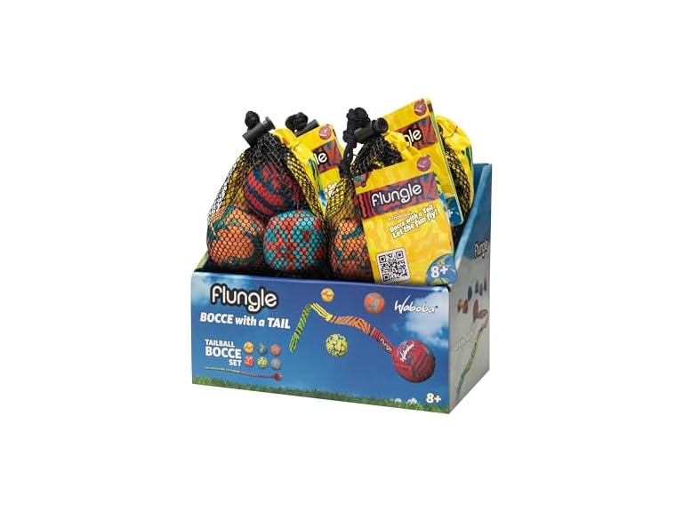 - NEW BALL TOSS GAME WITH A TAIL: Looking for fun outdoor games? Introducing Waboba’s new ball toss game with a twist! Unlike other bocce ball sets, FLUNGLE features a target you launch by the tail, & 6 sand balls you toss to see who lands closest to the target. You also use the tail to measure & calculate points once all balls have been thrown. Each color on the tail represents a different point. Add up each round, & play to 21 points.