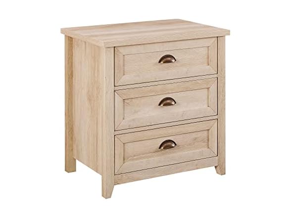 - (1) Walker Edison Hazel Modern Farmhouse 3 Drawer Framed Nightstand with Half-Moon Handles 25 Inch White Oak