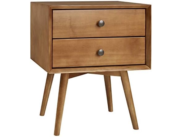 - (1) Walker Edison Mid Century Modern Wood Nightstand Side Table Bedroom Storage Drawer Bedside End Table, 2 Drawer, Caramel