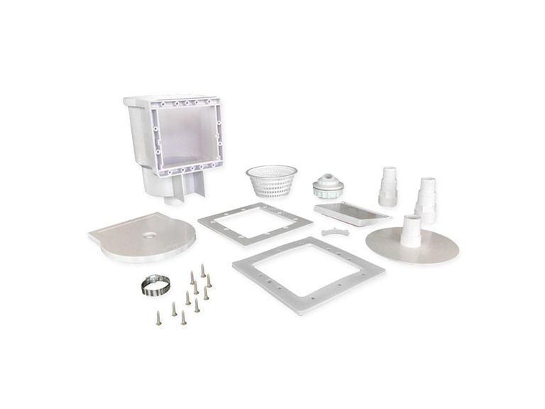 - (1) JED Pool Tools 45-400 Thru-The-Wall Skimmer & Complete Accessory Kit, White