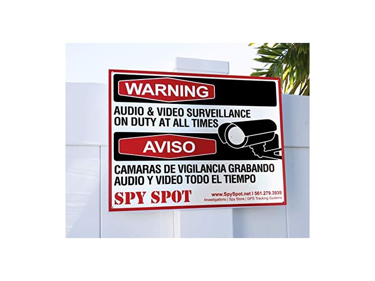 - (1) SpySpotGPS Tracker Warning Audio and Video Surveillance on Duty At All Times Plastic CCTV Sign in English/Spanish