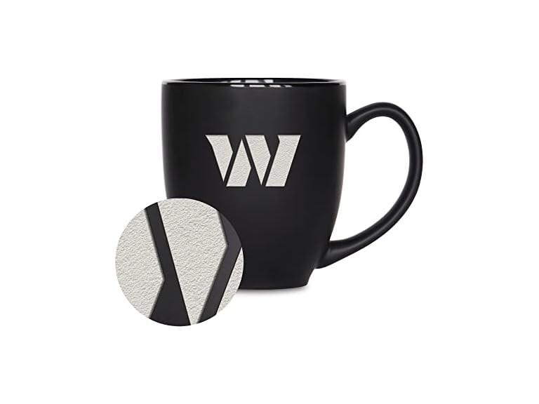 • (1) Rico Industries NFL Football Washington Commanders Main 15oz Laser Engraved Matte Black Ceramic Bistro Mug - For Hot or Cold Drinks