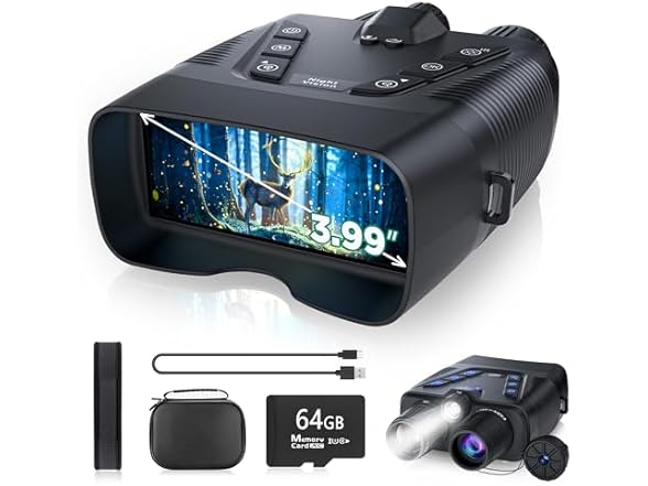 - CAPTURE WONDERFUL MOMENTS: The night vision goggles for adults support 58-megapixel photos and 4K Full HD video recording. An included 64GB memory card (expandable up to 512GB) is provided. Use the Type-C cable to easily connect the night vision device to your computer for seamless transfer and sharing of wonderful memories.