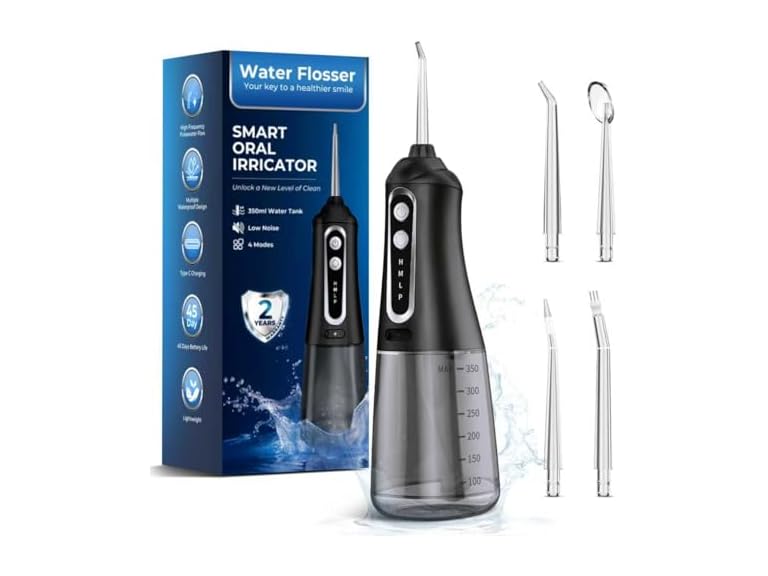 - 45-Day Battery, Portable for Anywhere -- Charge once, floss for weeks! Just 4 hours of charging gives you up to 45 days of use, perfect for busy mornings at home or long trips. It’s compact and lightweight, sliding easily into your toiletry bag or suitcase. Comes with a USB charging cable (Please use a 5V/1A charger for safe charging).