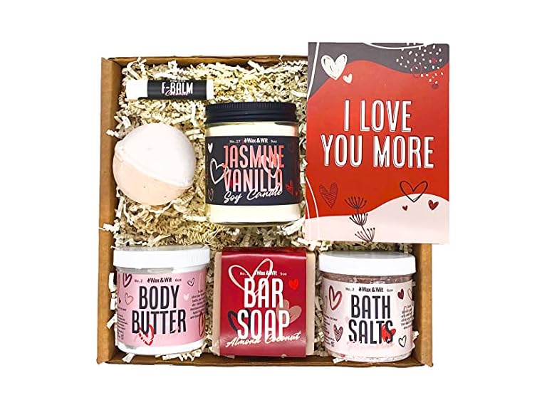 (1) WAX & WIT Gifts for Mom, Luxury Spa Set for Mom: Heartfelt Mother's Day & Birthday Pampering Kit | Handcrafted 7-Piece Relaxation Set from Daughter, Son - Mom Birthday Gifts, Mothers Day Gifts