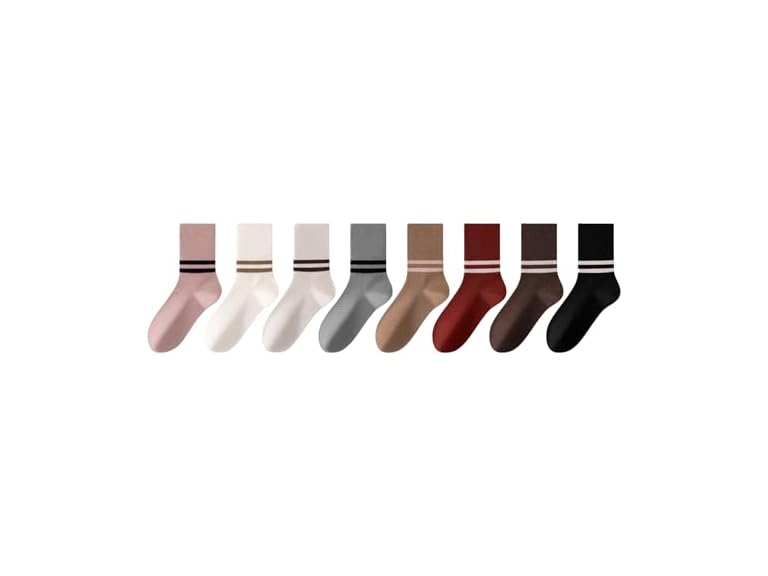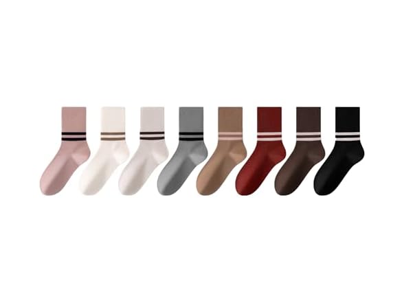 - (1) WaziHou Women Crew Socks, 8 Pairs Fashion Classic Colors Novelty Cozy Cotte Socks, Stylish Women's Casual Comfort Ankle Socks, Size 5-10