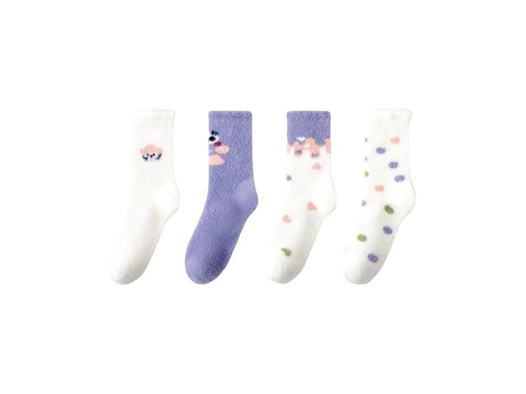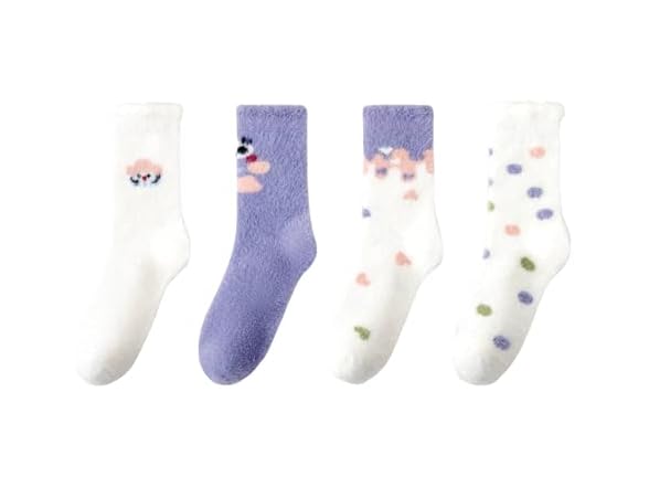 - STYLISH & CUTE DESIGNE: Very stylish and cute design for each pair of 4 fuzzy socks of each theme. They are perfect fuzzy socks for family members, friends and couples.