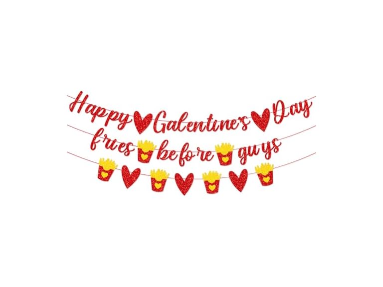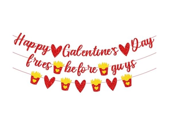 - Comes with pre-assembled Happy Galentines Day banner and fries before guys banner